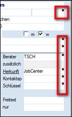 Eingabemasken und Suchmasken, die mit einem kleinen roten Quadrat in der