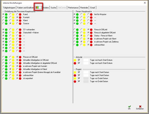 optionale Einstellung bei Verwendung des Organigramms - aus - innerhalb der Firma - über alle |