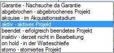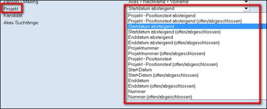 auf allen Übersichtstabellen: Projekt – Hauptdaten, Suchergebnisse |